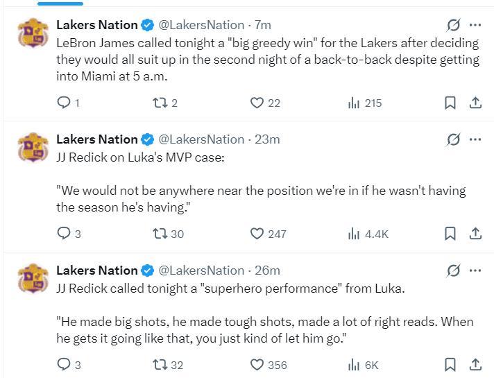 賽後東契奇成爲全美熱搜第一,東契奇的表演引發了熱議,因爲他背靠背兩場比賽合計拿到了100分,此役單場60分也是他湖人生涯首次,更是科比退役戰60分後湖人下一個60分。