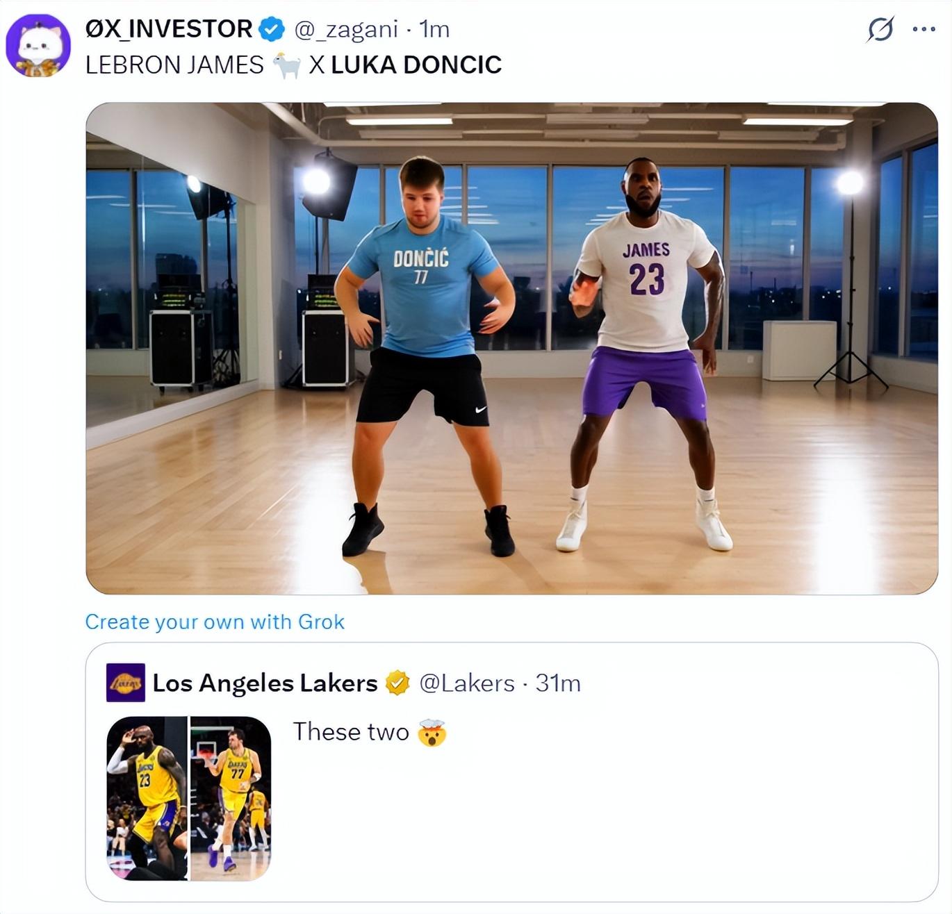 美媒轉推湖人盛讚東契奇X詹姆斯後寫道:詹姆斯/東契奇已是雙山羊。
