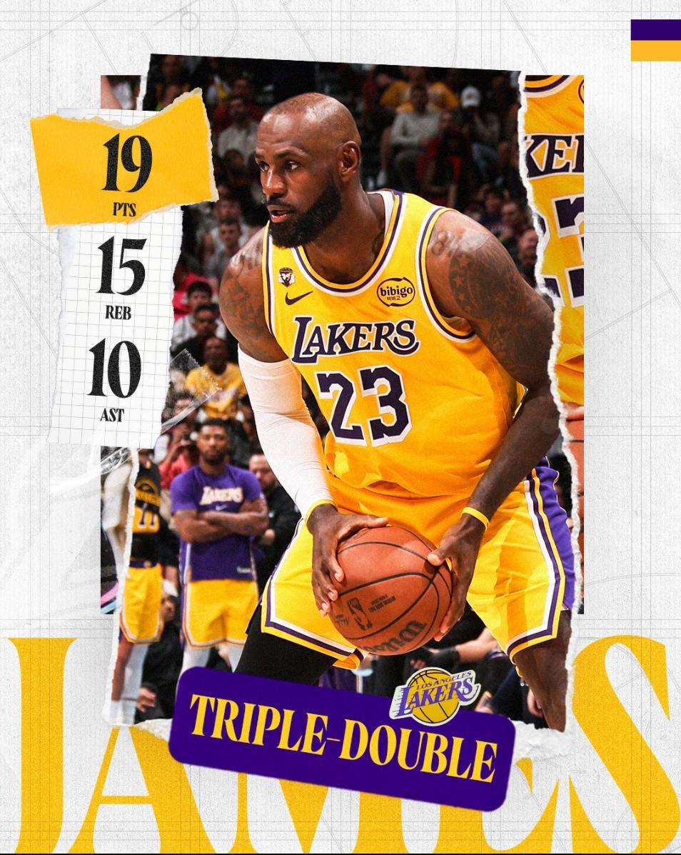 41歲的勒布朗雖然只是贏球的第二功臣,可他全場比賽僅12次出手命中8個拿到19分15籃板10助攻,命中率高達66.7%,詹姆斯以41歲的高齡再度拿到了三雙。