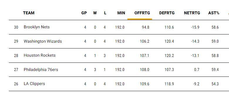 快船這一波四連敗,進攻效率109.6聯盟倒數第四,防守效率118.9聯盟倒數第十,淨效率值-9.2聯盟倒數第七,快船隊真是一夜回到解放前。