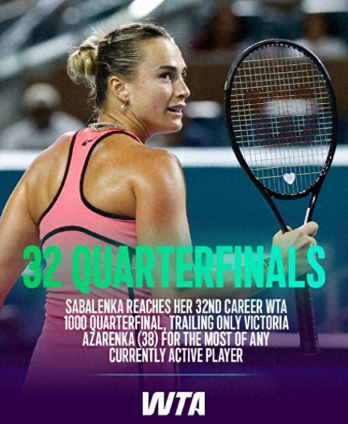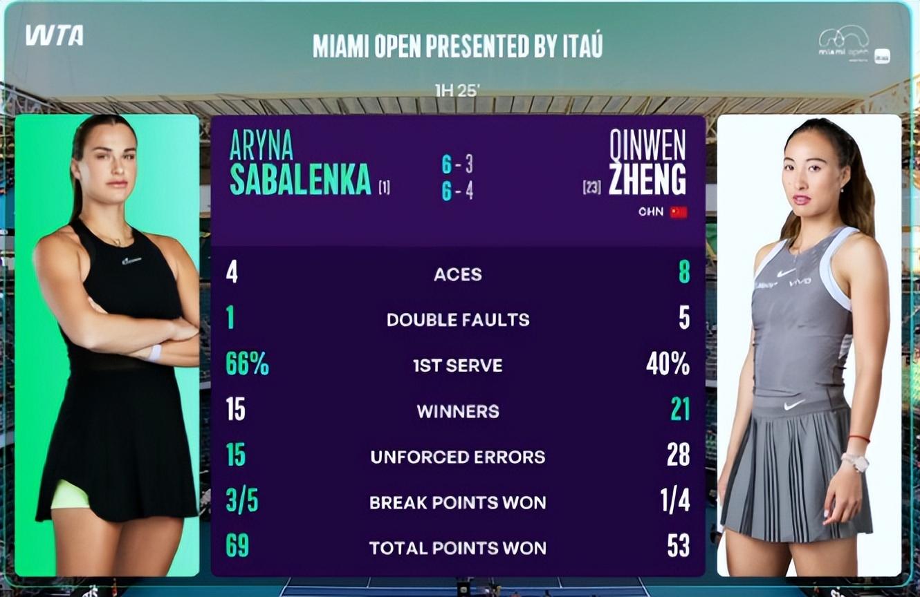 薩巴倫卡無愧世界第一,她已經第32次躋身WTA1000+賽事的八強,連續15項賽事至少闖入八強,賽季20勝1負(目前是一波9連勝),生涯在邁阿密站9連勝,她的統治力的確很強,但鄭欽文這場比賽並不是一點機會也沒有。