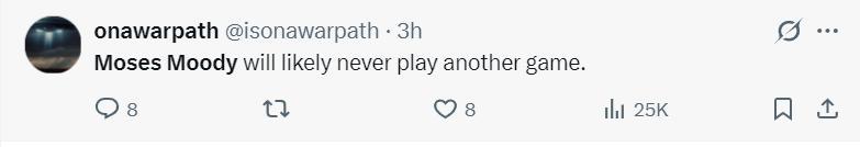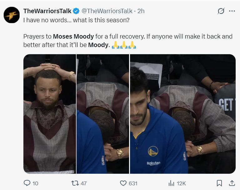 有勇士球迷沮喪發聲:穆迪未來可能都無法再登場打比賽了。