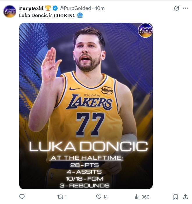 北京時間3月26日,NBA常規賽,湖人以137-130大勝步行者結束六連客。東契奇首節就拿到21分,上半場打完拿到28分,三節打完東契奇已經拿到39分7助攻5籃板4個三分球,全場比賽43分7助攻6籃板1搶斷,第二節與末節的得分不夠炸裂,東契奇多次露出了燦爛的笑容,湖人6連客5勝1負。