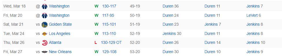 北京時間3月27日,底特律活塞129-108擊敗新奧爾良鵜鶘避免連敗。這場比賽活塞在第二節打出34-23的高潮一舉拉開差距,杜倫在籃下打出統治級的表現,而且他遭遇包夾後還能分出球權助攻隊友。