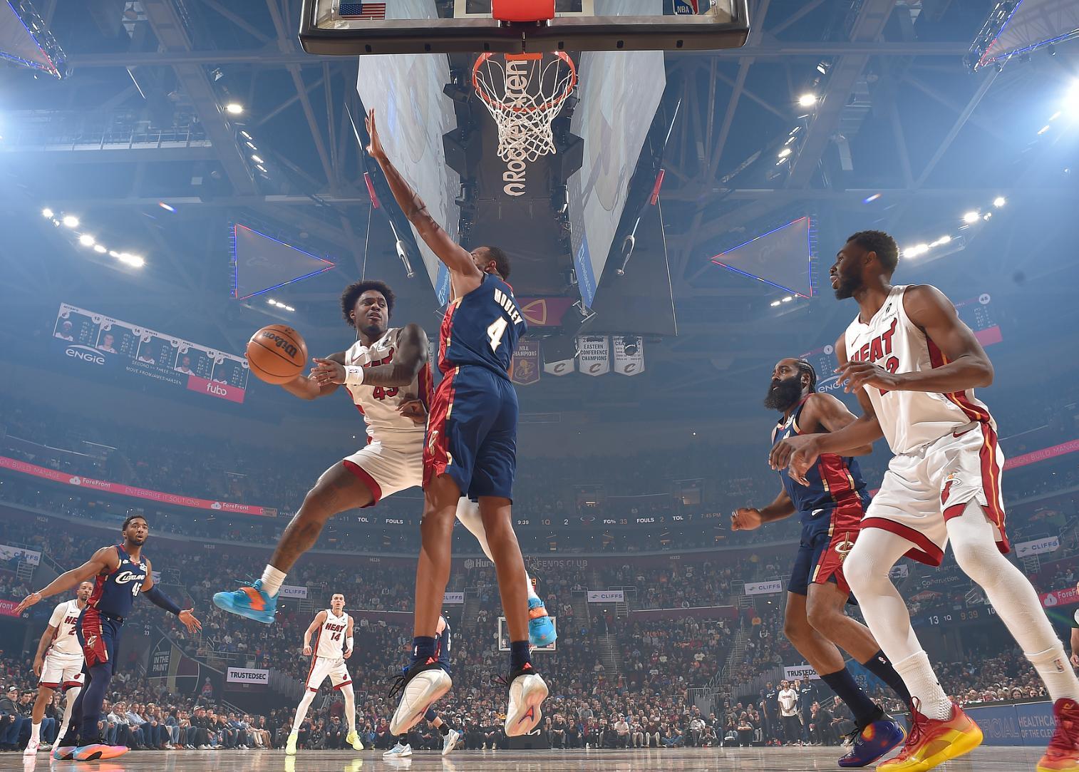 熱火:阿德巴約14中3拿14分16籃板,米切爾6中1拿2分,鮑威爾15分,威金斯12分,希羅13中4拿11分5助攻,哈克斯20分2籃板,韋爾14分8籃板,亞庫喬尼斯14分。