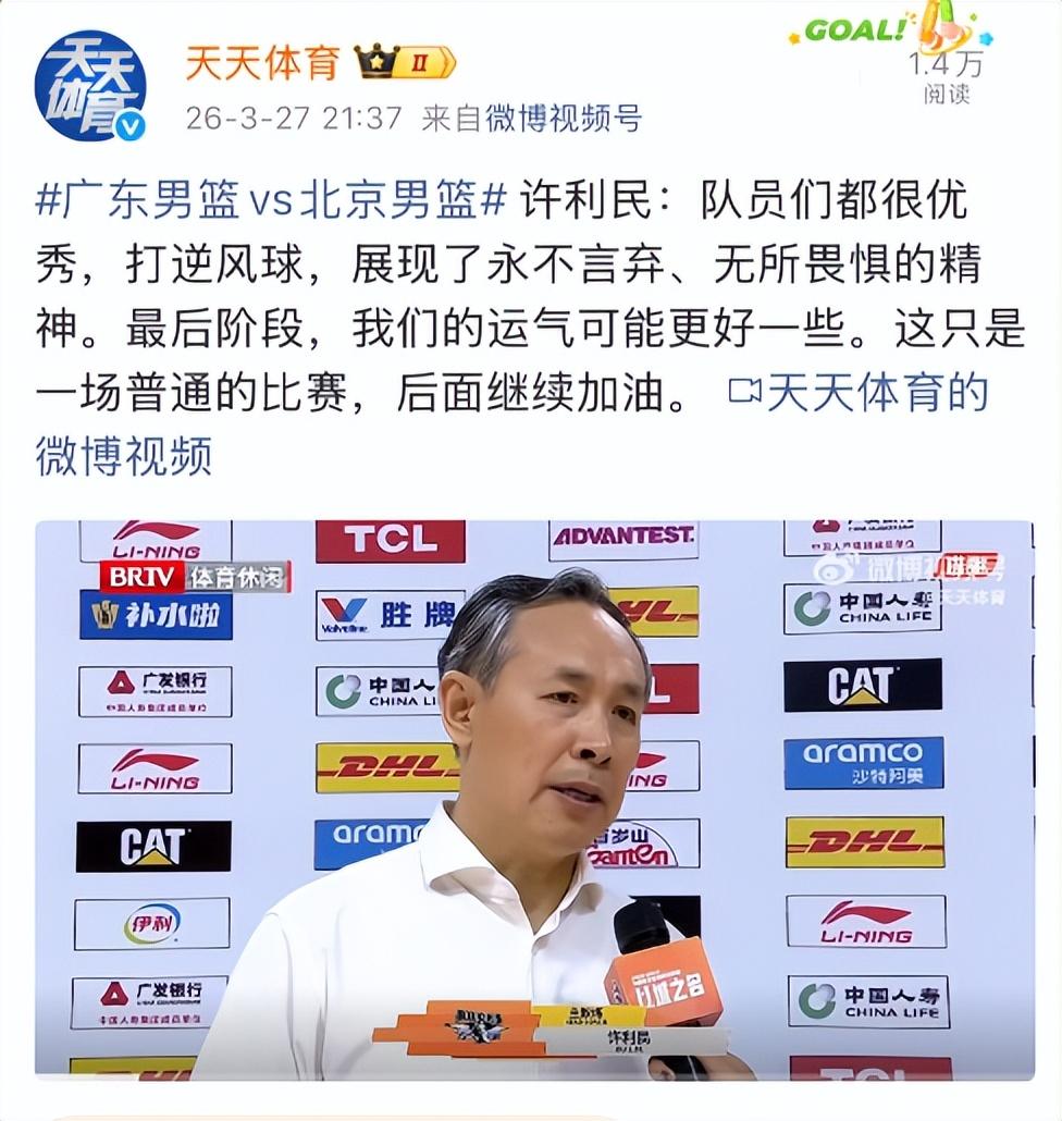 賽後許利民還殺人誅心:這場比賽隊員們都很優秀打逆風球,展現了永不言棄的精神。最後階段,我們的運氣可能更好一些。
