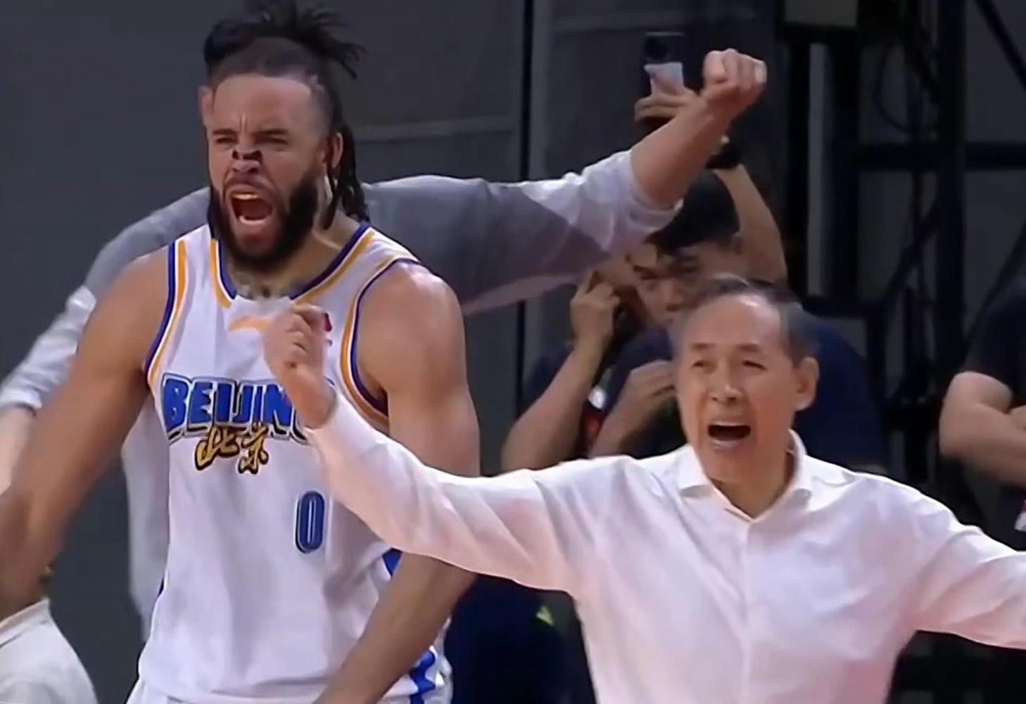 廣東從第二節中段進攻端就開始斷電北京瘋狂追分,末節進入最後的5秒,傑曼持球面對崔永熙的防守,連續的胯下變向後急停撤步三分命中,傑曼只給廣東留了0.5秒,傑曼成爲北京英雄。