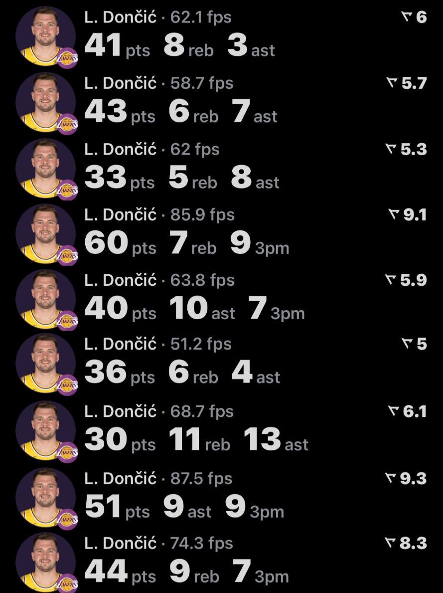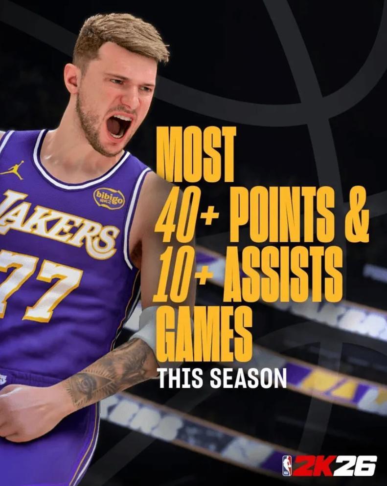 10.東契奇湖人生涯71次單場40+隊史第七多,僅差詹姆斯1場;
