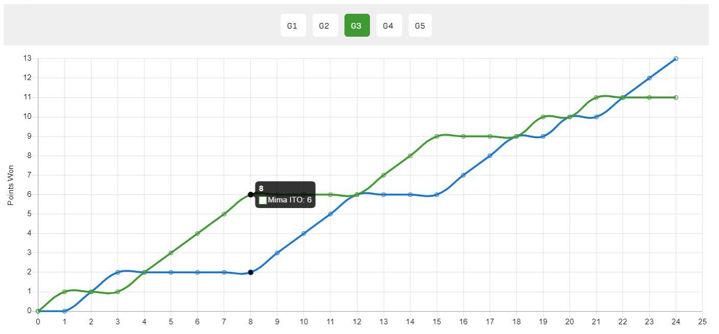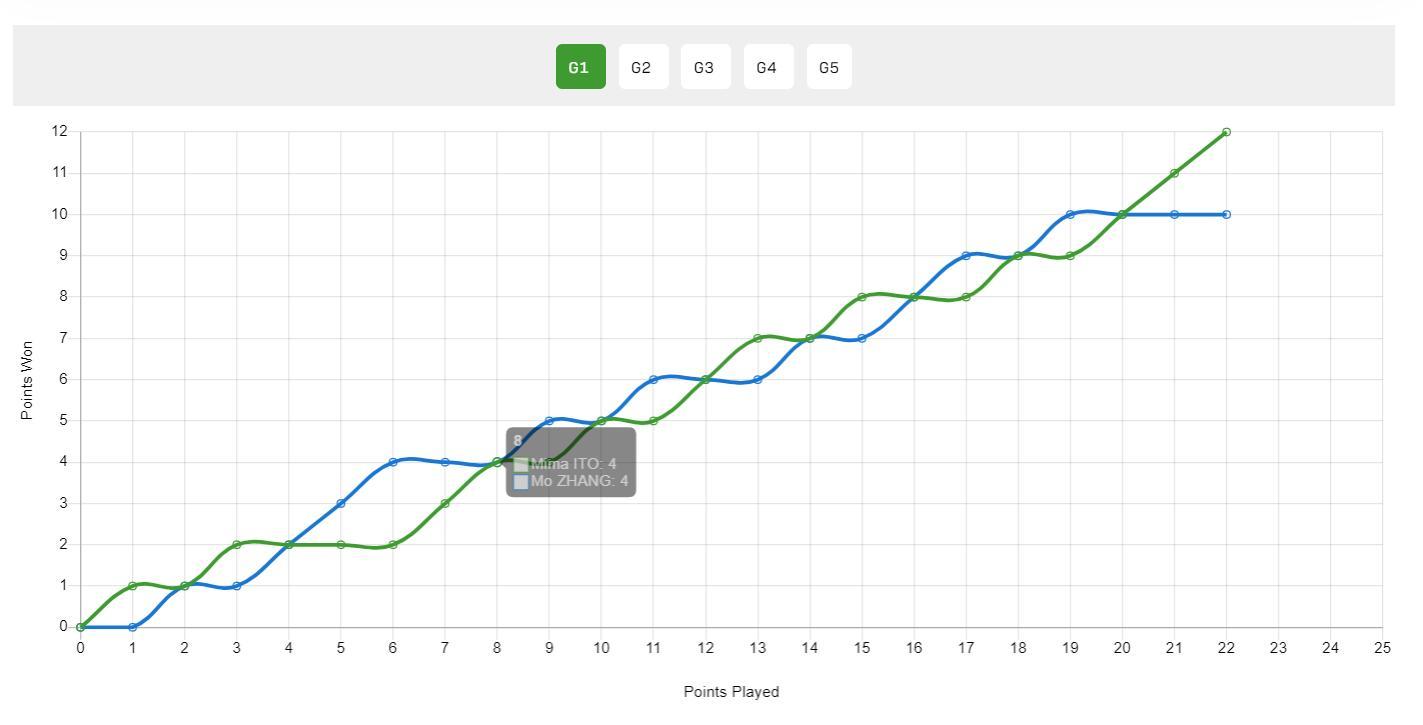 第一局兩人從4-4,5-5,6-6,7-7,8-8,9-9,10-10,伊藤美誠才艱難拿到關鍵兩分取勝。