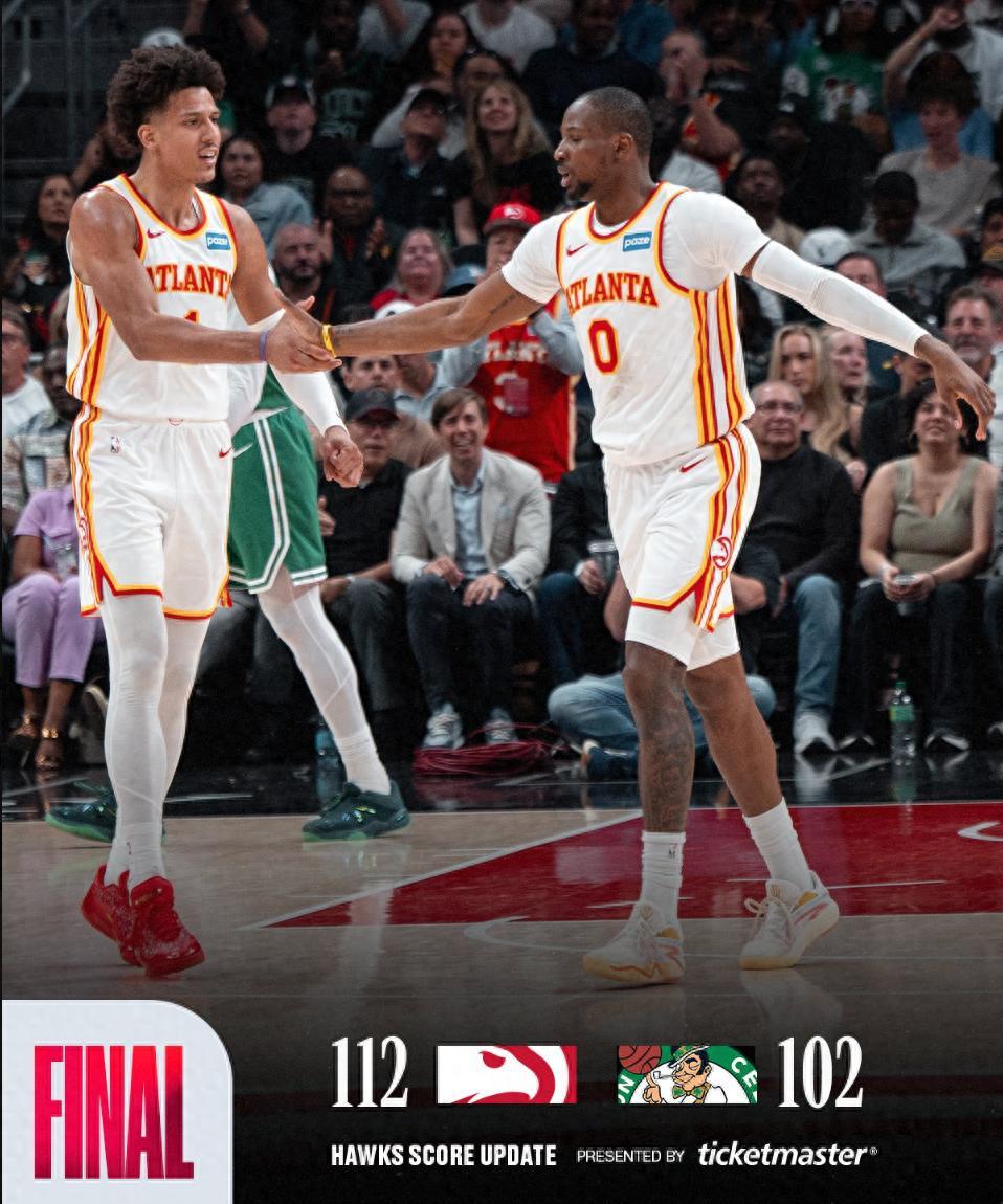 北京時間3月31日,NBA常規賽,亞特蘭大老鷹隊112-102大勝波士頓凱爾特人隊。這場比賽綠凱的傑森-塔圖姆、武切維奇、克塔輪休,杰倫-布朗狂砍29分10籃板9助攻還是未能挽回頹勢,老鷹全隊6人上雙。