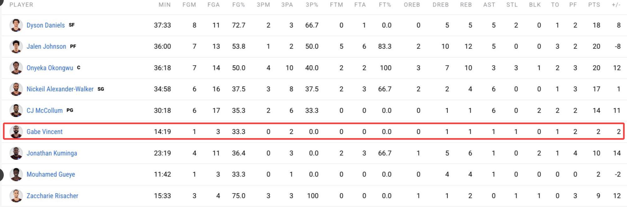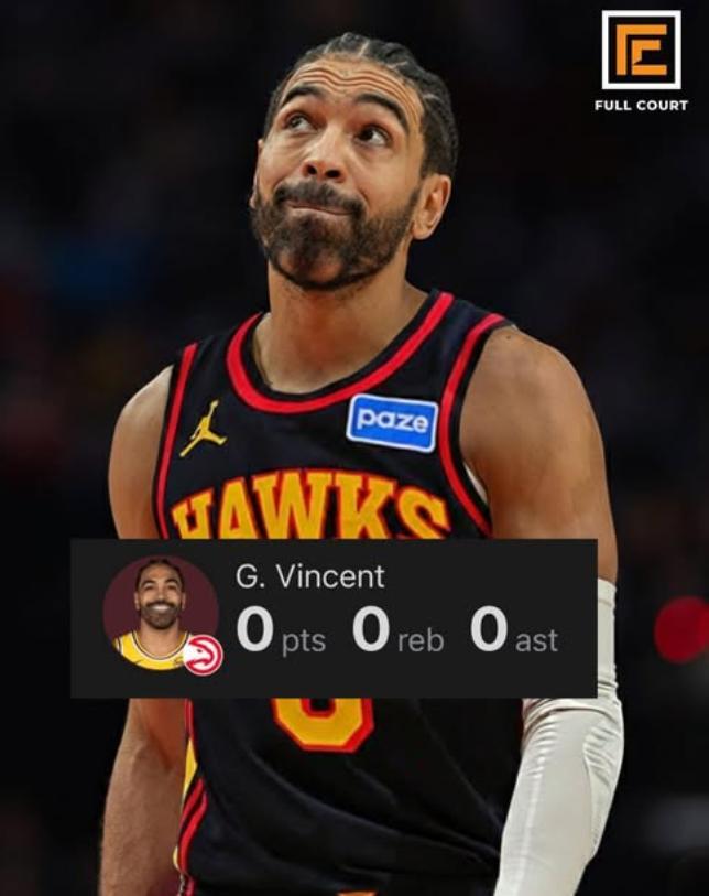 文森特自交易截止日被換來亞特蘭大後已經有三場比賽拿0分,他加盟老鷹後的19場比賽只有1場上雙,場均13.6分鐘,拿到3.9分1.1籃板1.6助攻0.6搶斷,命中率33%,三分命中率26.8%,這個表現比在湖人還要差。