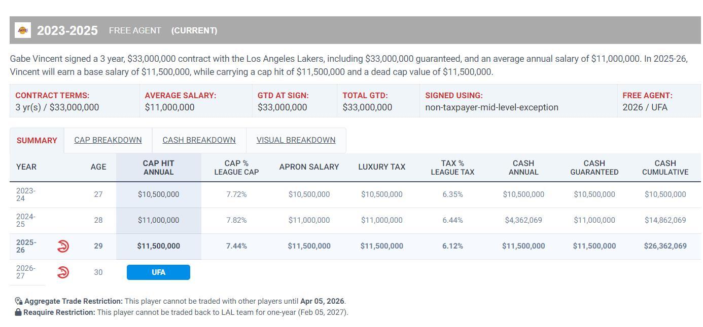 文森特三年3300萬的合同到期後他可能就沒有千萬年薪的可能性,今夏文森特只能去追逐底薪或部分中產560萬左右的合同了。