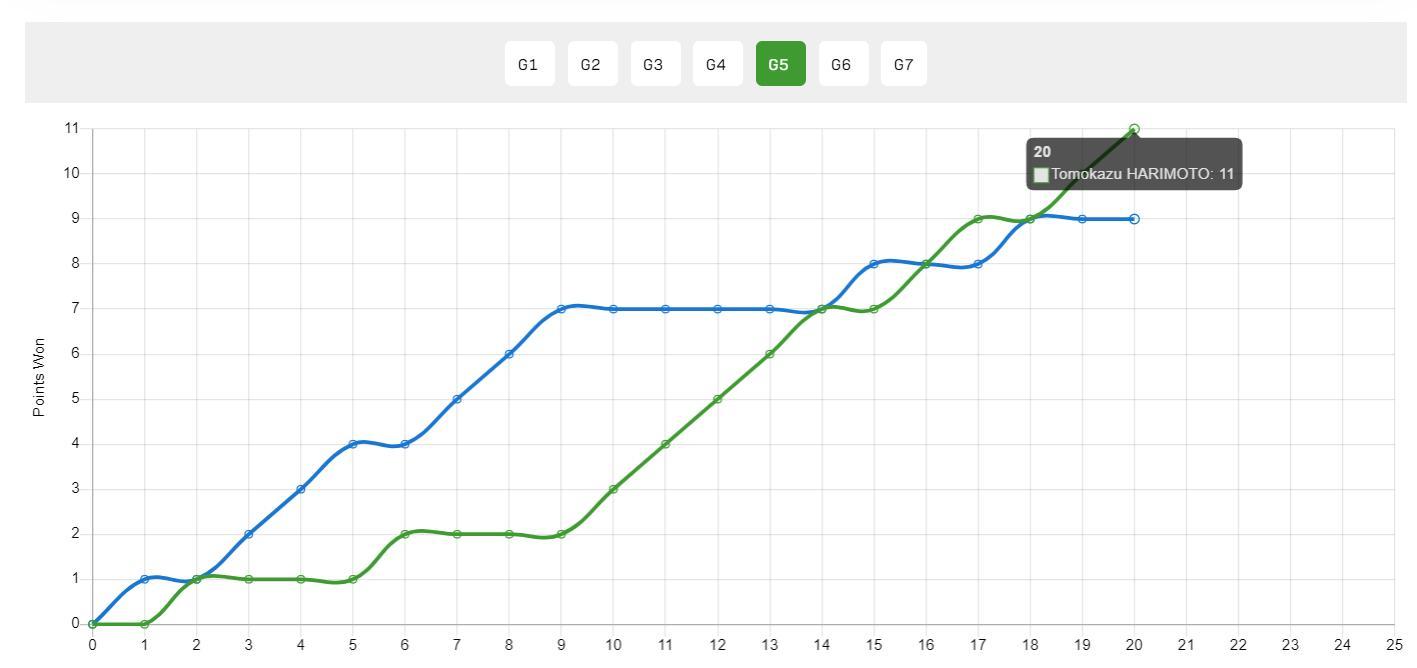 在搶七拿到決勝分後現場的球迷爲他響起了山呼海嘯一般的歡呼聲,張本智和爲了致謝球迷,他單膝跪地表示感謝。(在澳門球館張本智和的粉絲超多,加油聲夾雜中文、日文、英文)