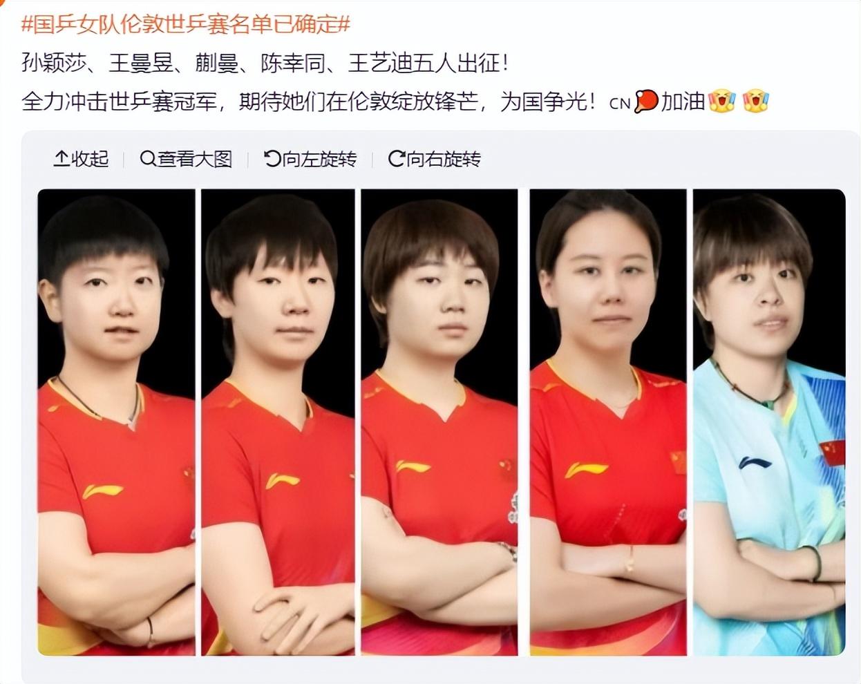 對比2024年釜山世乒賽的陣容,國乒女隊只讓陳夢換成了蒯曼,就實力而言孫穎莎與王曼昱都在頂峯,陳幸同和王藝迪對照2024年實力有所下滑,蒯曼無法達到24年陳夢水準,整體實力略有下滑。