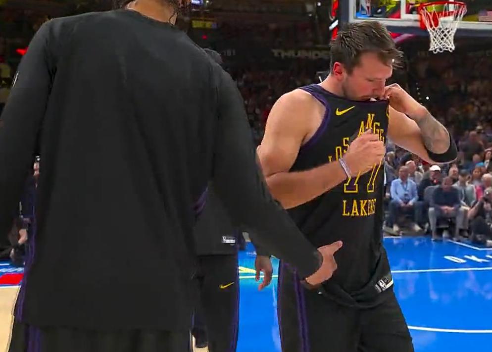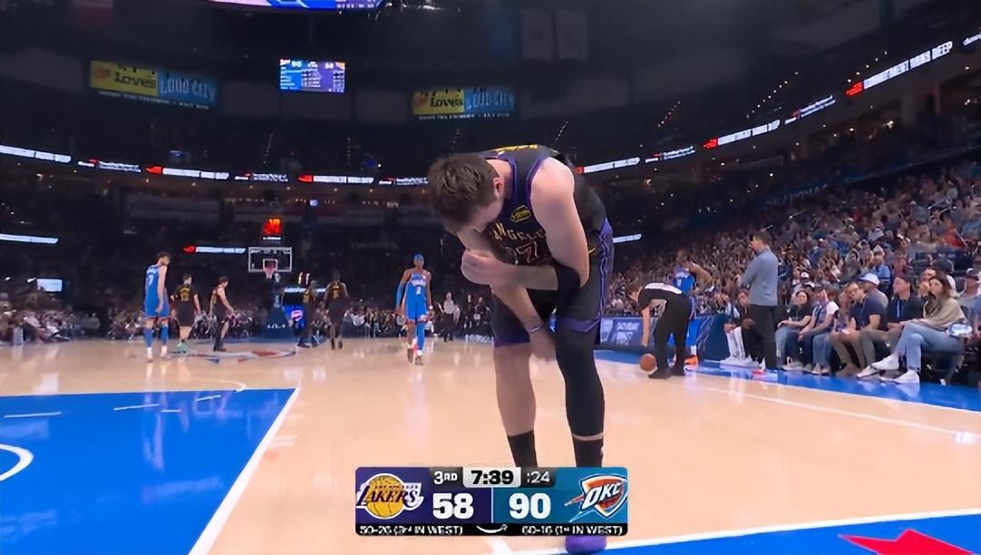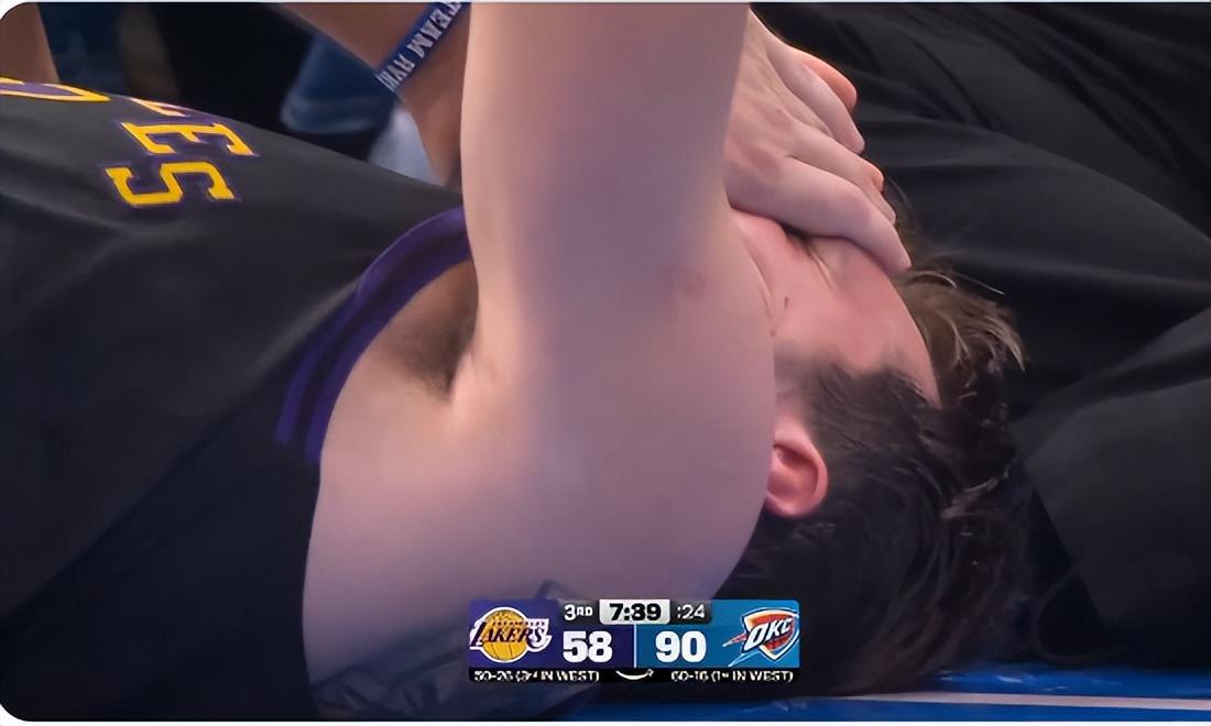 北京時間4月3日,湖人VS雷霆的比賽第三節,東契奇在一次突破急停後他捂着自己的左側大腿,隨後東契奇非常痛苦的倒地不起疑似是大腿的腿筋拉傷,隨後東契奇進入更衣室,東契奇是沮喪拉着球衣捂臉走進更衣室。