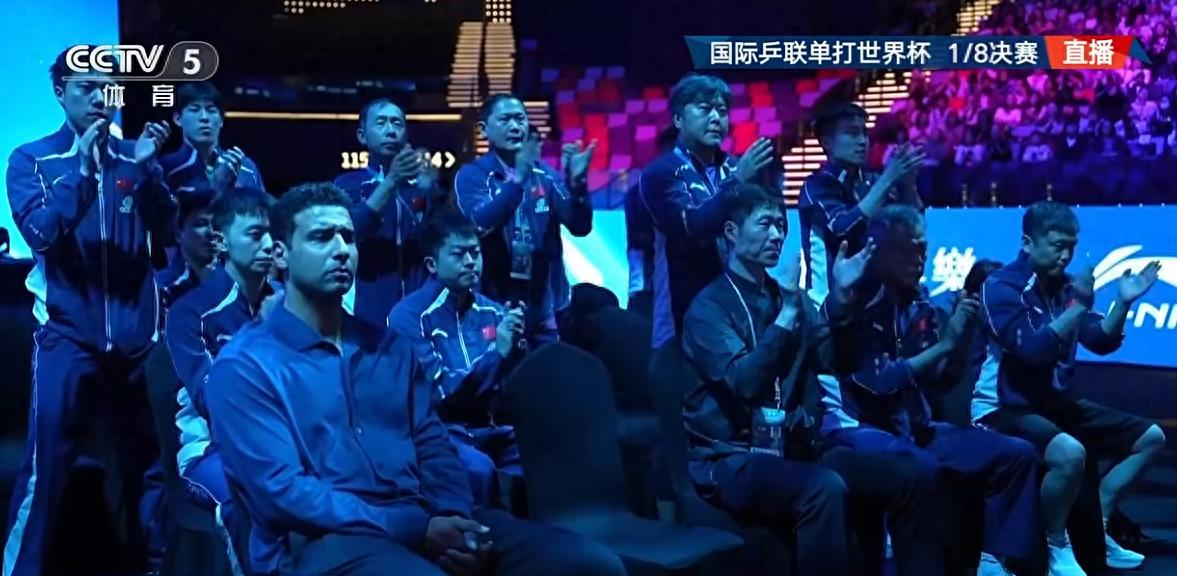 王楚欽拿下決勝分後全場歡呼,王楚欽張開雙臂接受吶喊,這一刻王楚欽似乎飽含熱淚。