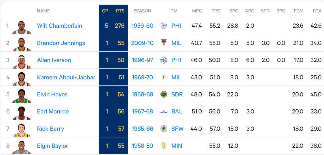 4.新秀拿到三次40+比肩馬拉維奇並列歷史第11位;