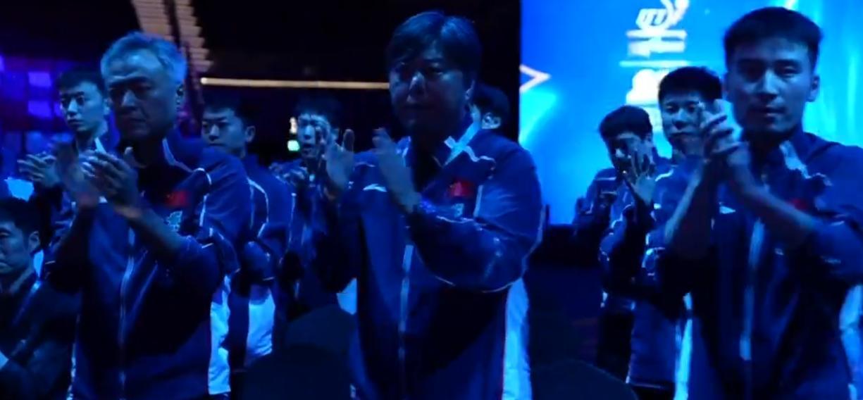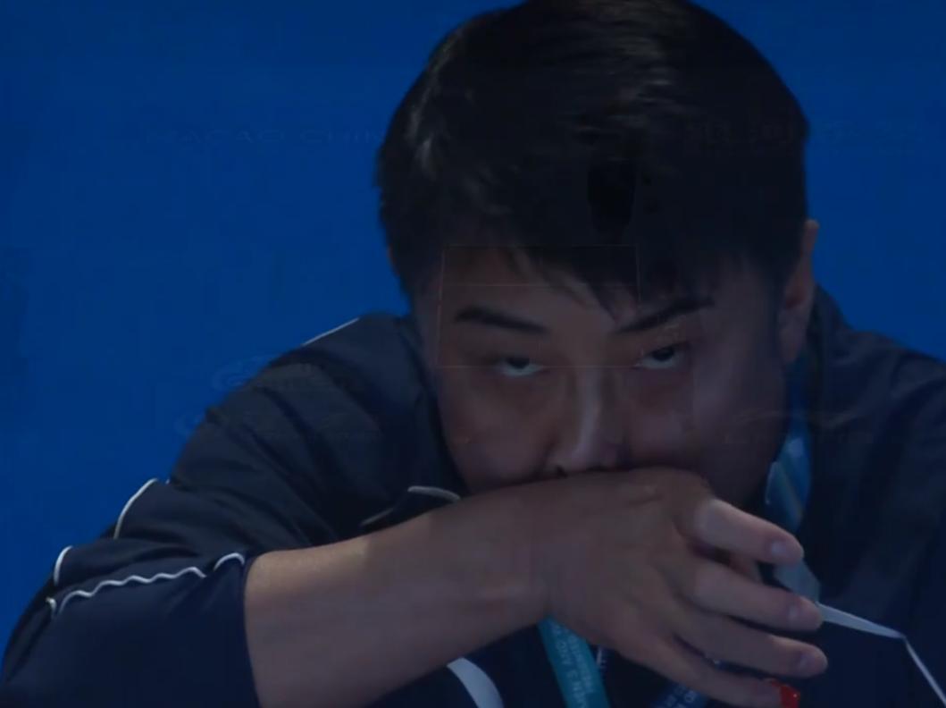 國乒替補席全部起立觀賽,而王楚欽的主管教練王皓汗如雨下,王皓指導不停地擦汗,這場比賽王楚欽太不容易了。