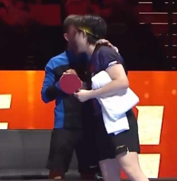就連對方的教練都被王楚欽打服了,賽後王楚欽去握手致敬達科的教練組抱着大頭不放手,兩人相談甚歡,大頭甚至跟達科的教練一起哈哈大笑,這是被大頭的實力所折服吧。