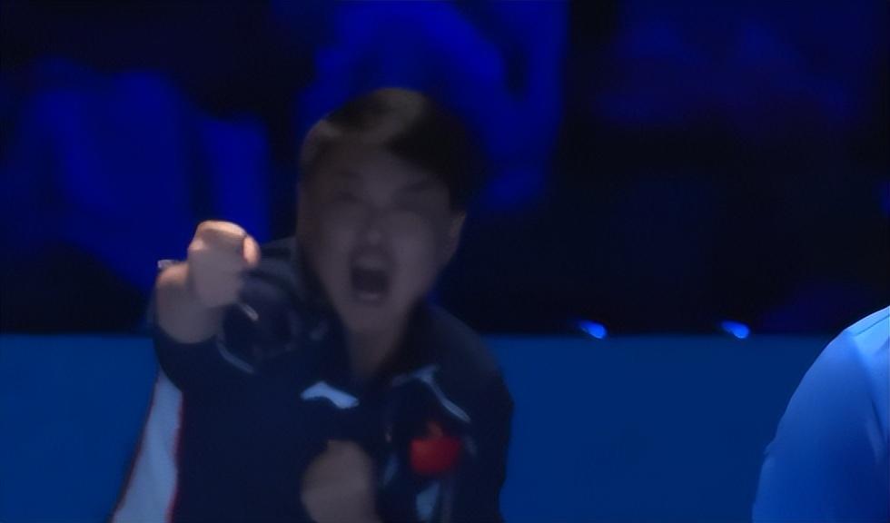在第七局王楚欽拿到第11分後,王皓指導站起來握拳怒吼,王楚欽心領神會的看着王皓微笑比了一個‘1’的手勢,兩師徒的隔空對話太有默契了。