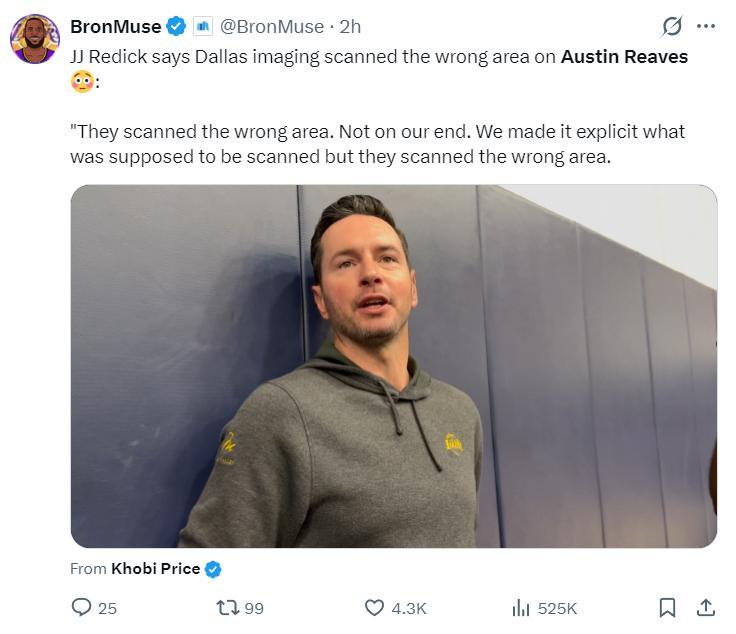 雷迪克對達拉斯的醫院感到不滿,雷迪克表示:這是我們第二次進行MRI檢查,因爲在達拉斯的影像中心他們掃描的位置是錯誤的,我們告知他們掃描了錯誤的區域但他們還是掃描錯誤了。