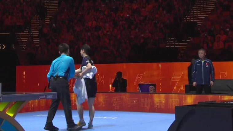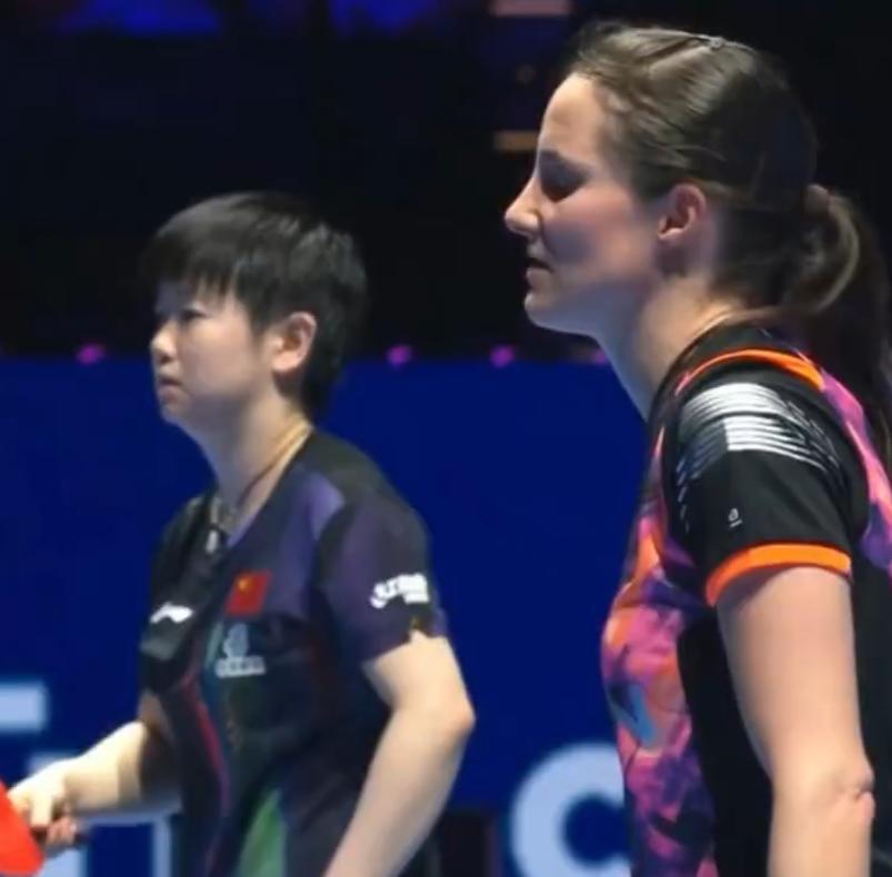 在第四局孫穎莎拿下勝利後,從溫特的臉上也能看出莎莎的強大,溫特跟孫穎莎握手致意後她閉着眼睛不敢相信。因爲溫特在本屆世界盃上發揮非常出色,她在1/4決賽中4-0爆冷王藝迪,1/8決賽4-1輕取U19世青賽冠軍覃予萱,她甚至被冠上了國乒剋星的頭銜,但面對孫穎莎她依舊沒有任何辦法。