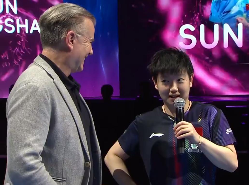 賽後孫穎莎接受採訪,她表示和曼昱打一如既往的膠着,賽前沒有設想過多的目標,非常的開心能夠三連冠。