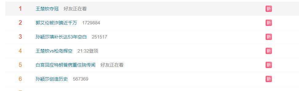 王楚欽奪冠也登上熱搜榜第一的位置,王楚欽是各種逆轉取勝,對陣小勒1-2落後連贏三局逆轉,對陣約奇克1-3落後連贏三局逆轉,對陣松島輝空2-3落後連贏兩局逆轉。(淘汰賽只有打雨果最輕鬆)