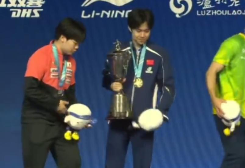 進入頒獎典禮後,在王楚欽、松島輝空、雨果、林昀儒都領取了自己的獎牌後,大家可以看到松島輝空站的位置跟王楚欽有些遠,松島輝空應該非常的懊惱自己手握巨大優勢未能把握住。