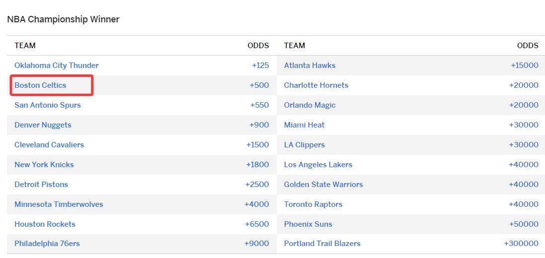 最關鍵的一點,雖然綠凱的戰績只是聯盟第四的存在,可最新的奪冠賠率上綠凱已經超過了馬刺、掘金、活塞等球隊排在雷霆之後,雷霆+125,綠凱+500。