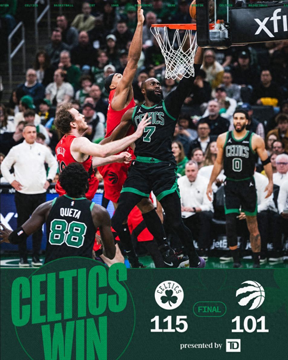 北京時間4月6日,NBA常規賽,波士頓凱爾特人115-101大勝多倫多猛龍拿到三連勝,這也是綠凱本賽季第53勝,綠凱已經領先東部第三的尼克斯三個勝場,綠凱大概率已經鎖定了東部第二的席位,塔圖姆出戰的14場比賽他們贏下其中12場。