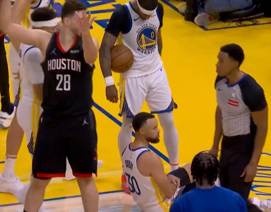 庫裏此役在首節還剩4分54秒登場,他足足休息了65天(27場比賽),他的跑步膝終於痊癒了,賽前熱身還完成了暴扣,火箭還是先用阿門去盯庫裏。