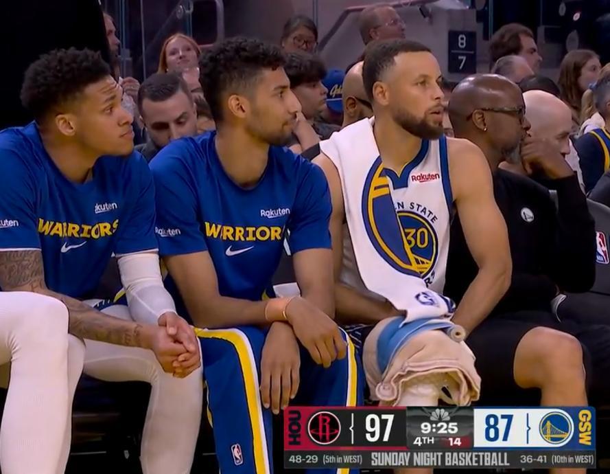 庫裏的右膝似乎並沒有痊癒,他除了有登場時間外,他只要下場就在冰敷+按摩,不知道庫裏能否以100%的狀態進入附加賽。