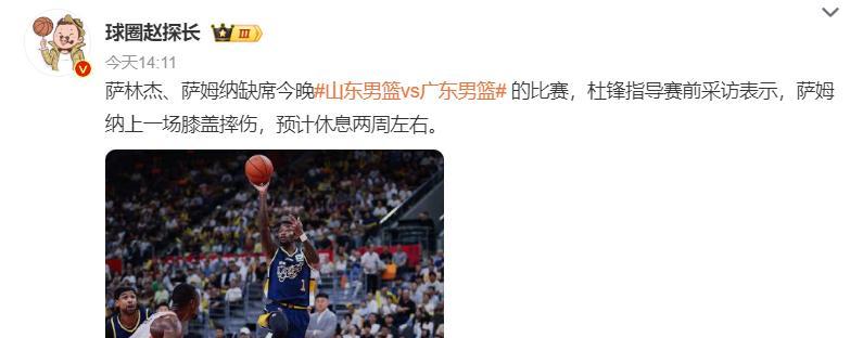 薩林傑、薩姆納缺席這場比賽,杜鋒指導賽前採訪表示,薩姆納上一場膝蓋摔傷,預計休息兩週左右。
