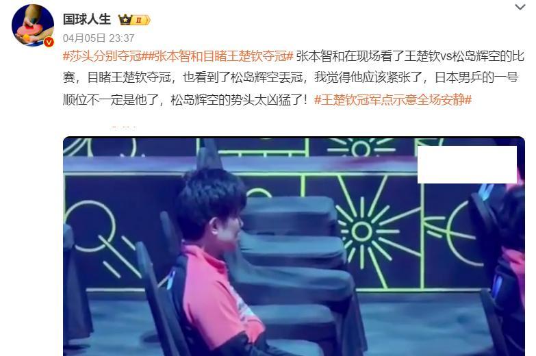松島輝空VS王楚欽的世界盃決賽,張本智和是全程觀賽,她的妹妹因爲沒有進入八強已經提前回到日本,張本智和一個人在日乒替補席觀戰,他親眼目睹了松島輝空將世界第一的王楚欽逼入絕境。