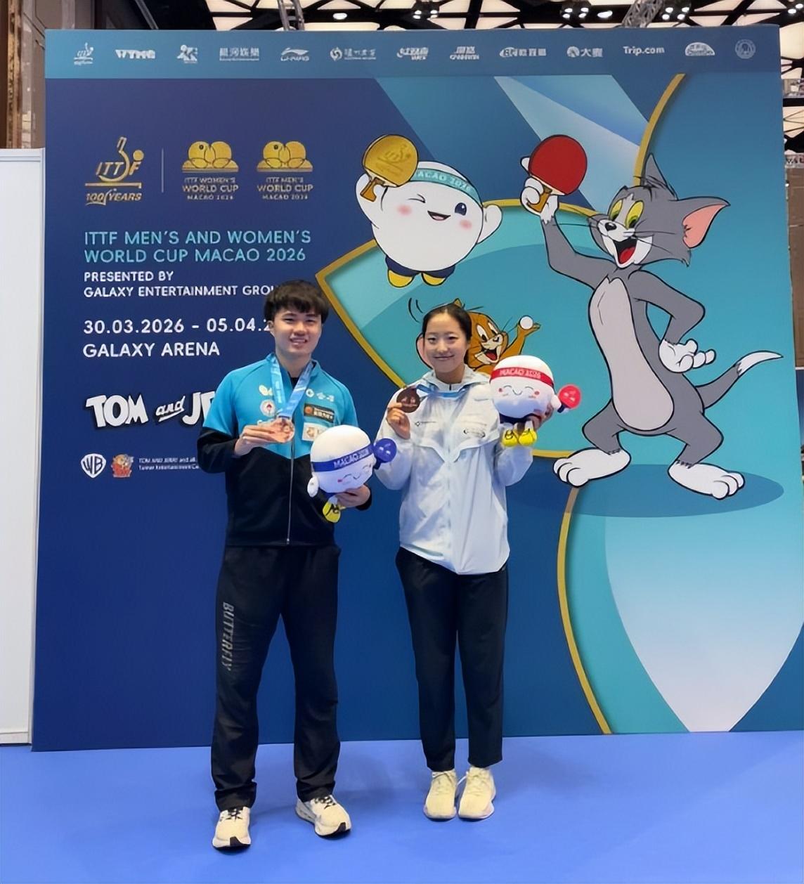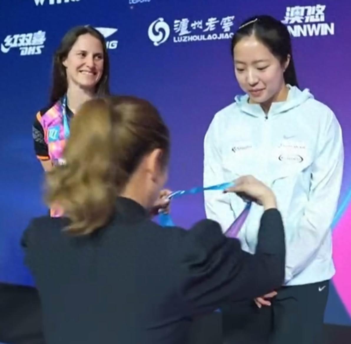 申裕斌與沙賓-溫特成爲2026年澳門世界盃的銅牌選手,在2024年世界盃改制後進入四強就能站在領獎臺,這讓申裕斌成爲韓乒歷史首位在世界盃舞臺拿到獎牌的選手,21歲的她書寫了全新的韓乒歷史。(爲申裕斌戴上獎牌的是劉詩雯)