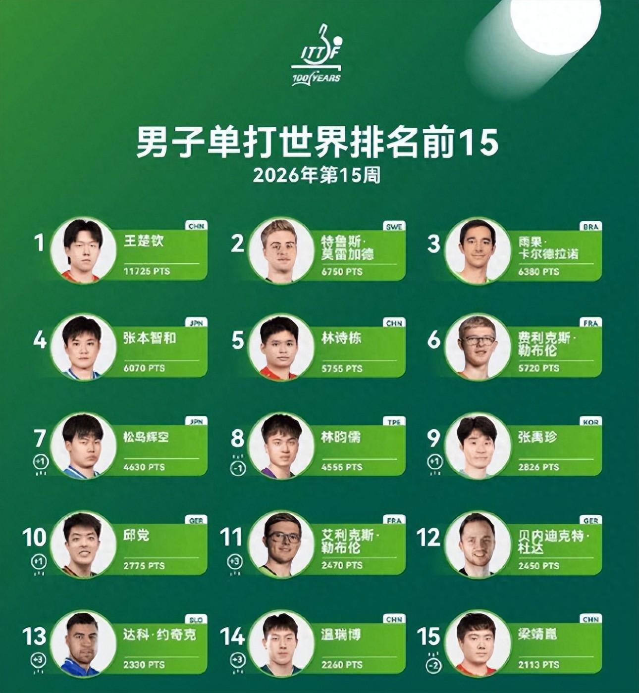 最新一期的世界排名已經出爐,國乒19歲的小將溫瑞博升至第14,他反超了梁靖崑,溫瑞博本屆世界盃衝入八強拿到300分,而梁靖崑無緣16強,梁靖崑從世界第13下滑到第15。