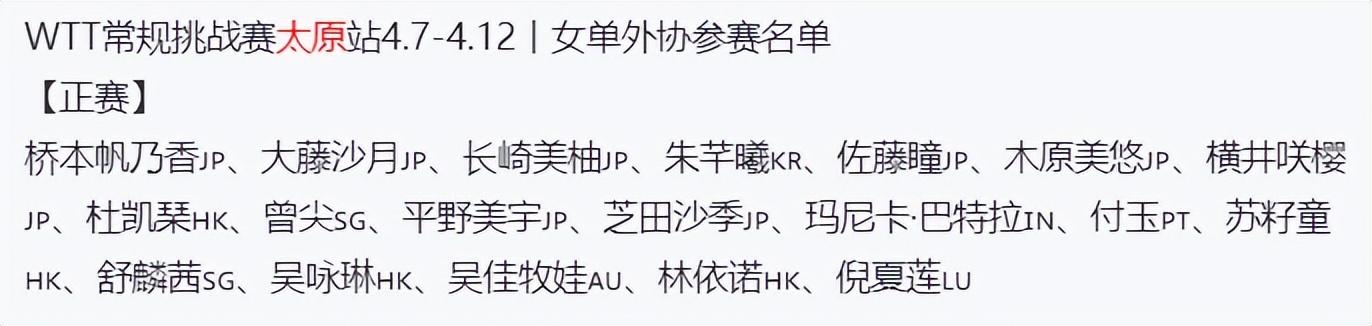 本次太原站的外協名單並不差,剛剛打完世界盃的橋本帆乃香也會打,而且日乒來了7位大將:橋本、大藤沙月、長崎美柚、佐藤瞳、木原美悠、橫井咲櫻、平野美宇,不管姚睿軒遇上她們哪一位都是對技戰術的提升,如果姚睿軒能在太原站登頂女單冠軍那含金量會非常高。