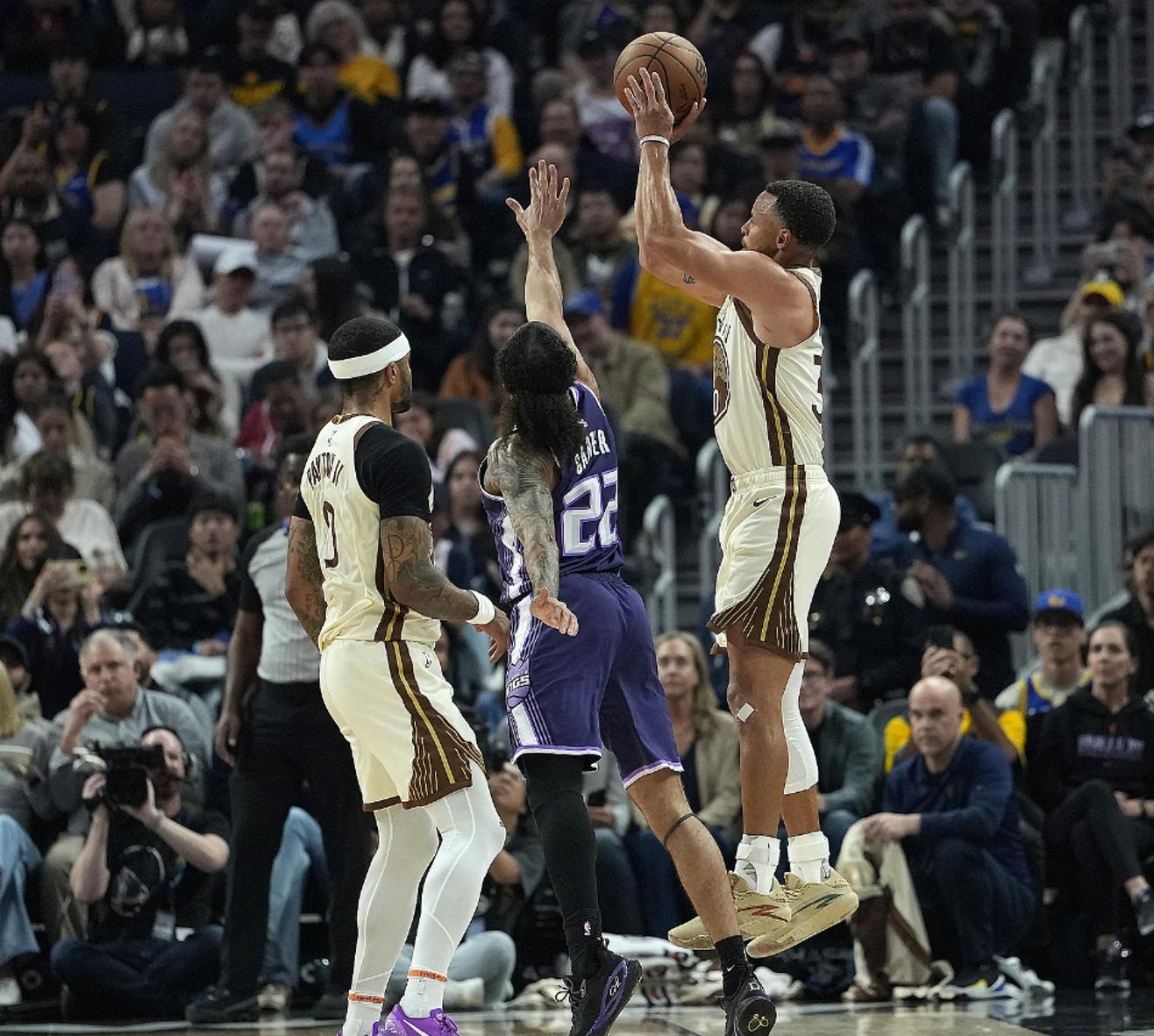 易邊再戰庫裏的手感下滑,國王也一直貼着他,他單節6分鐘裏三分2中0只拿到0分1助攻1搶斷,而且勇士被國王單節打出28-19縮小分差,當庫裏的進攻打不開後勇士的進攻效率就明顯下滑。