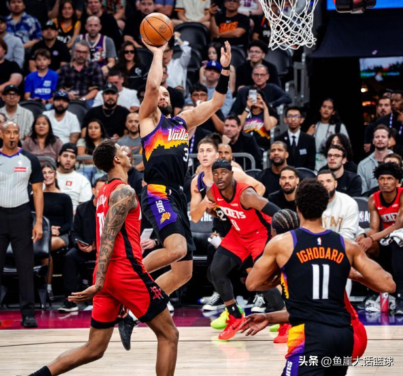 北京時間4月8日太陽主場對陣火箭,全場比賽結束太陽以105-119輸給了火箭。近5場比賽中太陽取得了3勝2負的戰績,同時這場比賽是格林被交易後首次對陣火箭,所以屆時格林打出什麼樣的表現也值得期待。而火箭近期狀態火熱是取得了一波6連勝,這樣火箭暫時排在西部第五的位置,同時因爲火箭僅僅落後西部第四的湖人1個勝場,因此火箭能夠繼續取勝的話,那麼火箭還有巨大機會去提升自己的排名。本場比賽太陽首發爲:布克、格林、古德溫、狄龍和馬威,火箭首發爲:謝潑德、阿門、杜蘭特、史密斯和申京。