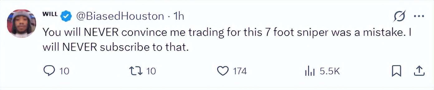 休媒Will:你永遠無法相信交易得到這位7尺得分手是一個錯誤,我永遠都無法認同你們這種觀點;當我們領先快30分時,我真的希望杜蘭特能坐在場下休息,當他倒地時我的心都爲之一顫。