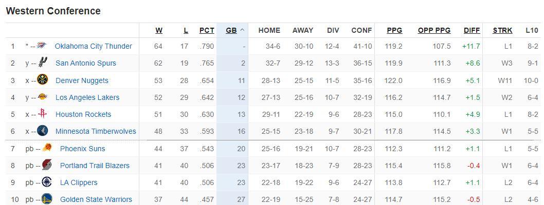 湖人這場勝利徹底穩定了西區的格局,西部前四火箭隊已經沒有希望了,火箭早些時候惜敗森林狼已經鎖定第五,湖人隊目前是第四,掘金11連勝第三。