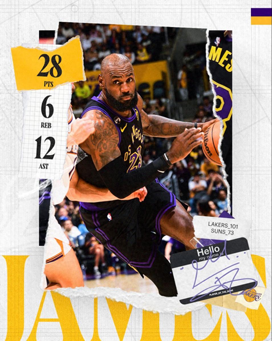 湖人101-73大勝太陽豪取二連勝,這場比賽41歲的勒布朗32分鐘裏16中10,狂攬28分12助攻6籃板4搶斷,再一次展現了君臨天下,各種的快攻暴扣看得主場球迷驚呼連連,41歲的他油箱裏還有許多油。
