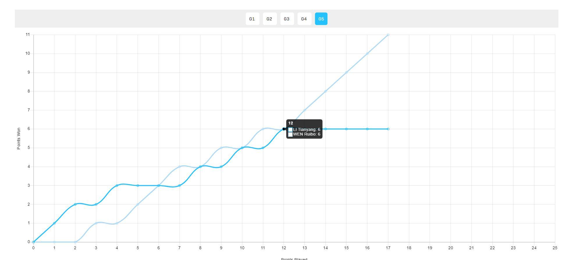 這場比賽的決勝局兩人一直膠着到6-6,但李天陽突然連續的失誤,溫瑞博打出了一波5-0直接拿下勝利,對於頂級削球手來說低級的連續失誤並不多見,或許是李天陽的心態發生了變化。