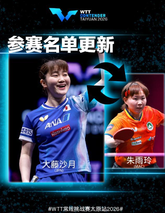 大藤沙月在太原站原本是沒有報項的,因爲朱雨玲的退賽她才遞補進來,大藤沙月世界排名13是本站的頭號種子,21歲的她本該是日乒衆星捧月一般的存在,可在2026賽季她已經淪爲了邊緣人,海口亞洲盃、澳門世界盃、倫敦世乒賽都沒有她的份,她只能繼續打WTT賽事來維持自己的世界排名。
