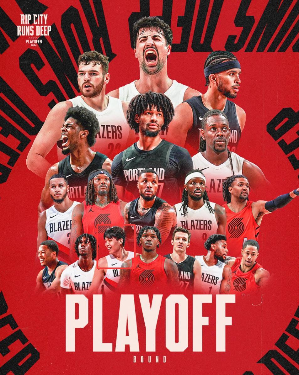 賽後開拓者官方曬出了2025-26賽季進入季後賽的海報,大家能看到楊瀚森被放在最下面一排,這一排幾乎都是輪換邊緣的球員,但只要能進入季後賽對於楊瀚森來說就是里程碑,作爲去年首輪16順位的新秀,他剛剛加盟NBA就進入了季後賽。