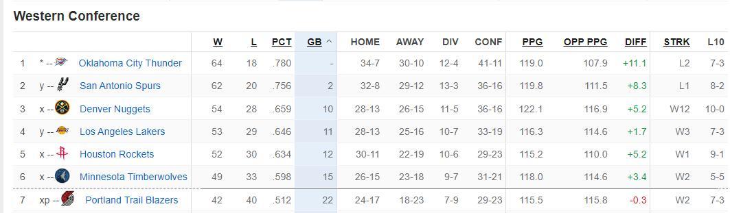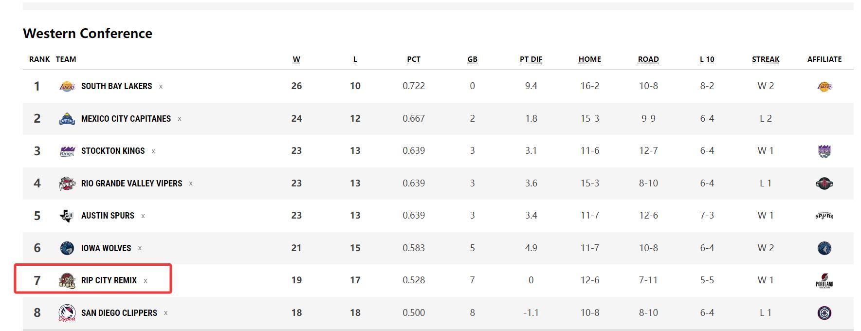 在G聯賽的混音是西部第七,在首輪黑七淘汰了墨西哥船長,回到NBA開拓者也是第七首輪要打拿到62勝的馬刺。