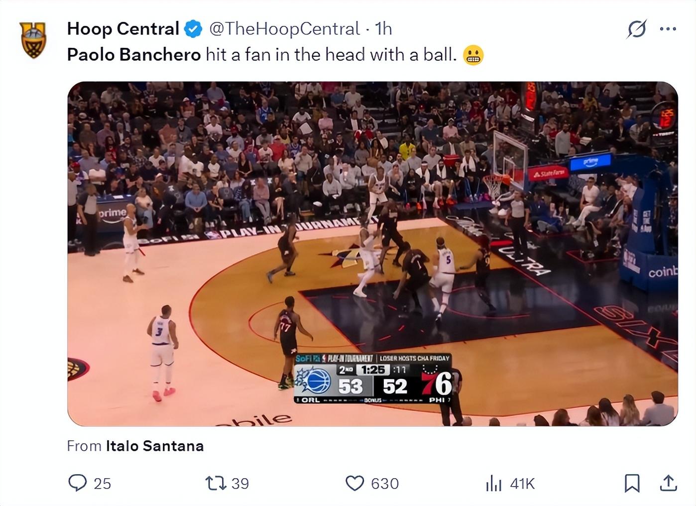 上半場班凱羅在一次突破過程中,直接將球傳給了看臺的球迷,完成本場第一個五大囧。