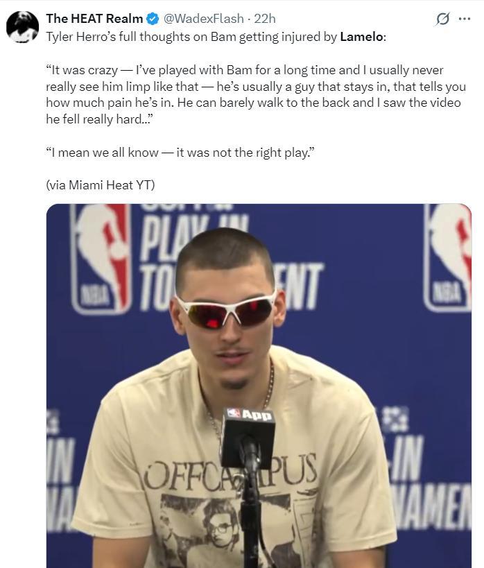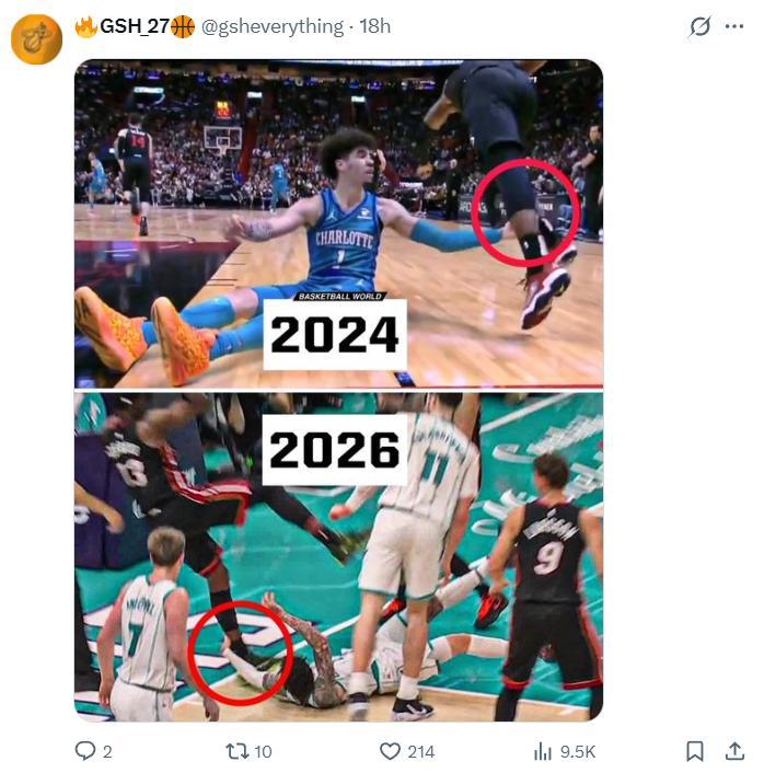 熱火媒體對一張圖回應了三球的言論:閉上你的臭嘴吧,這已經不是你 第一次故意絆倒阿德巴約了。