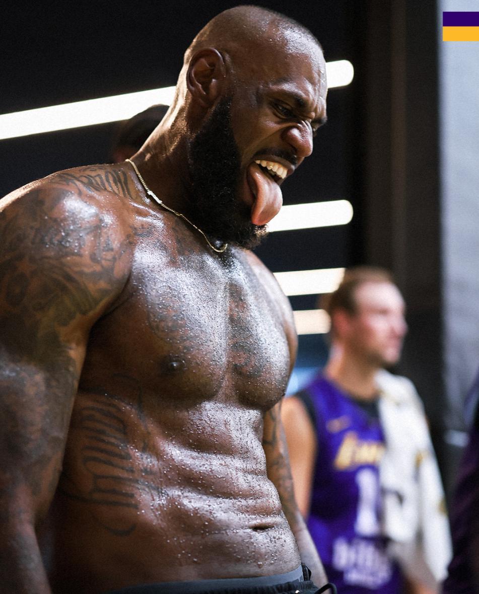 大家可以看到41歲的勒布朗身材依舊炸裂,他作爲一個老頭子還是有八塊腹肌,在訓練後他脖子上青筋暴露,老詹的胸肌、肱二頭肌都非常明顯,勒布朗在訓練時的興奮度也在,放眼世界體壇在這個年齡還能保持這個身材、自律度、競技狀態的可能也只有C羅與勒布朗了。